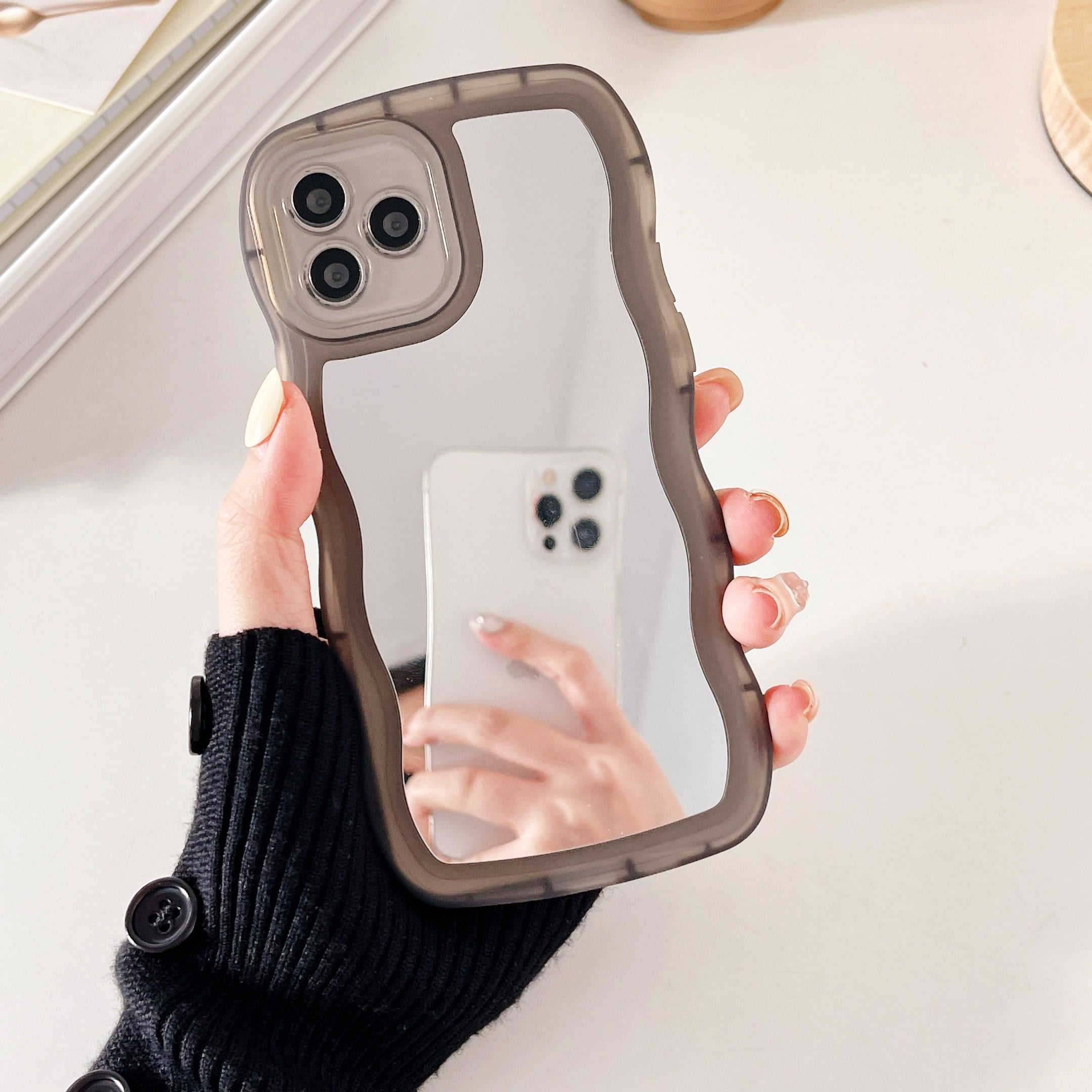 Tech Circle Case With Mirror For Iphone 12 Pro Max Cute Wavy Non Slip Edge Hard Back Soft Bumper For Girls Woman Make Up Case For Iphone 12 Pro Max Black Walmart Com