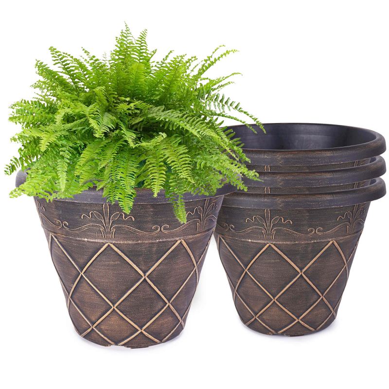 4 Pcs Retro Flower Pot Outdoor 13 7 Plastic Plant Pots Jofamy Large Flower Pots With Drainage Hole For Outdoor Indoor Plants Lightweight Large Planters Bronze Garden Planter Pots